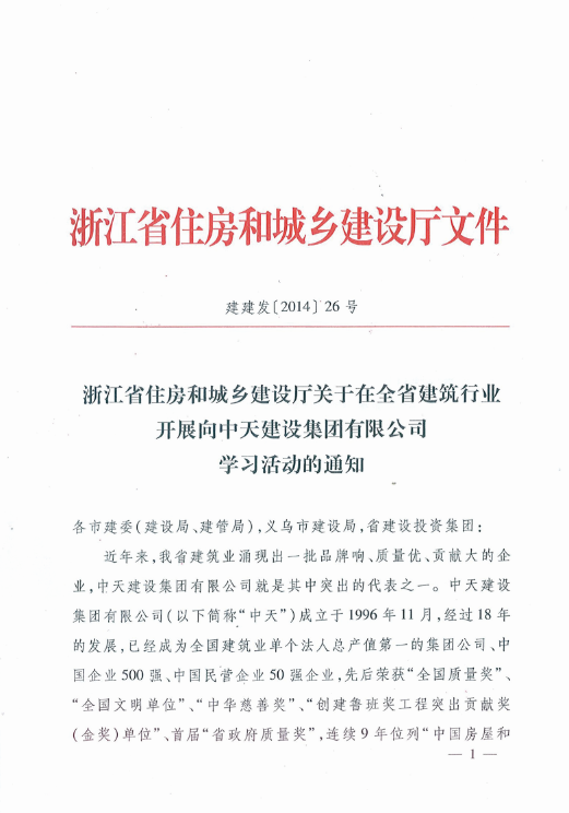《浙江省住房和城乡建设厅关于在全省建筑行业开展向EZPay建设集团有限公司学习活动的通知》